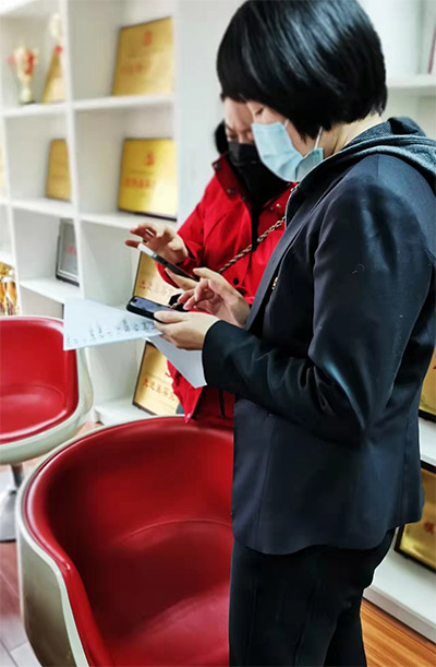 “北京普惠健康保”首笔理赔的患者家属在办理理赔手续。(“北京普惠健康保”项目组供图)