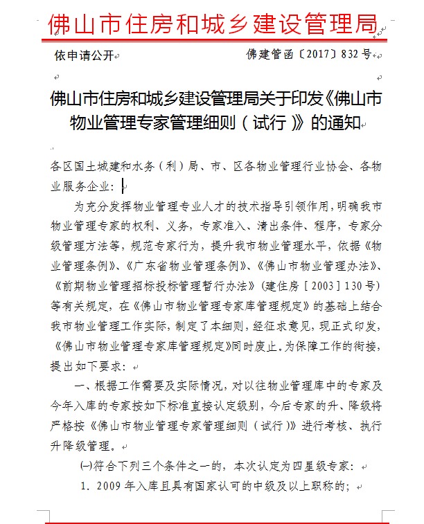 关于印发《佛山市物业管理专家管理细则(试行)》的通知439