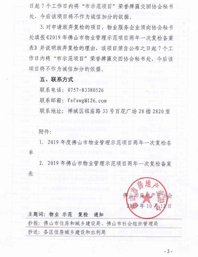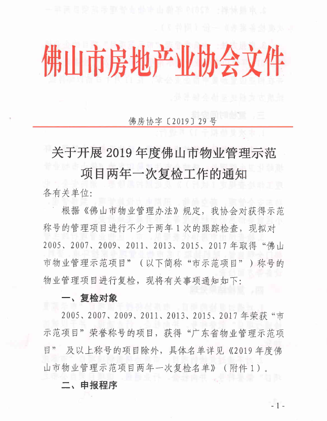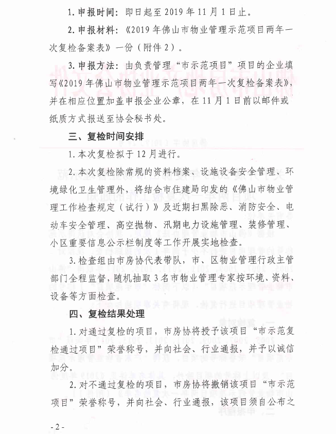 关于开展2019年度佛山市物业管理示范项目两年一次复检工作的通知224