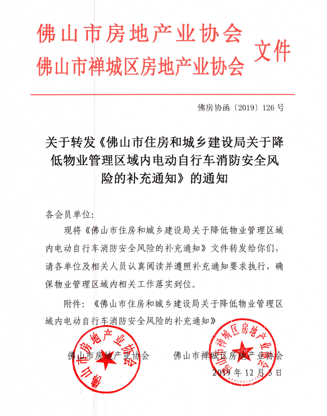 关于转发《关于降低物业管理区域内电动自行车消防安全风险的补充通知》的通知160