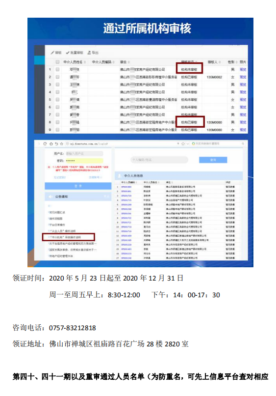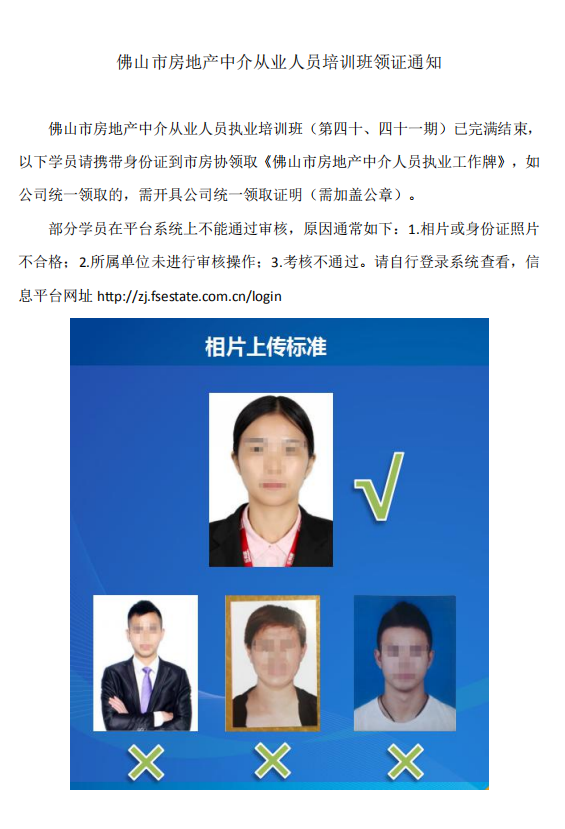 佛山市房地产中介从业人员培训班领证通知(第四十、四十一期)166