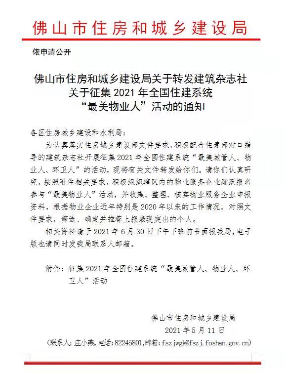 关于转发《佛山市住建局关于建筑杂志社关于征集2021全国住建系统“最美物业人”的活动》的通知47