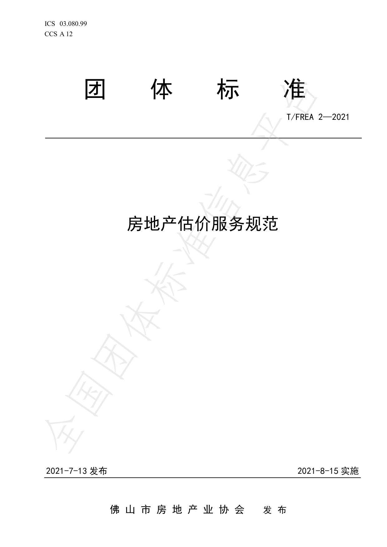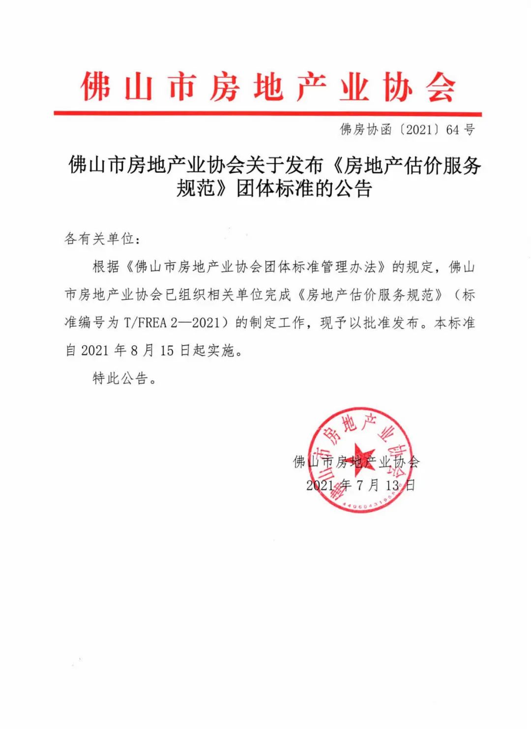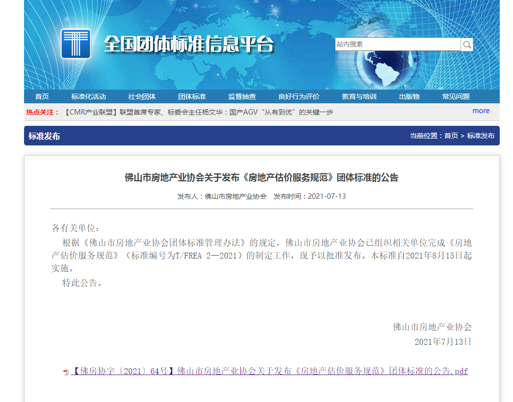 佛山市房地产业协会关于发布《房地产估价服务规范》团体标准的公告386
