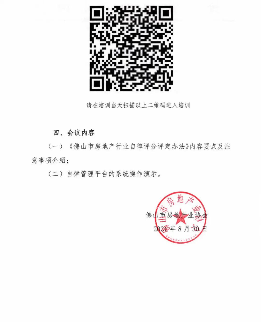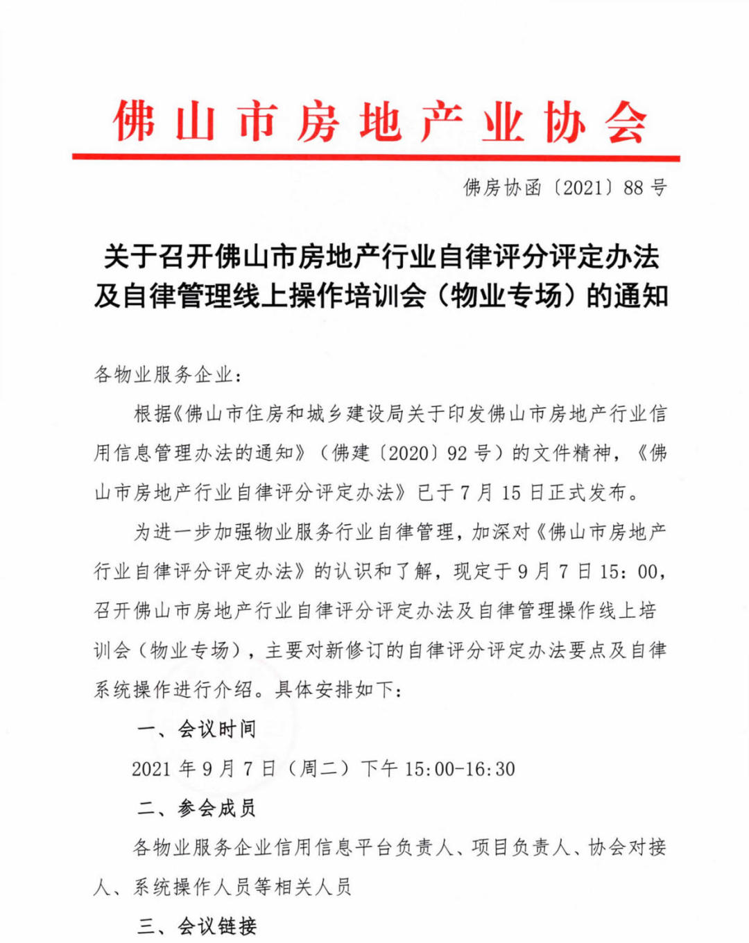 关于召开佛山市房地产行业自律评分评定办法及自律管理线上操作培训会(物业专场)的通知84