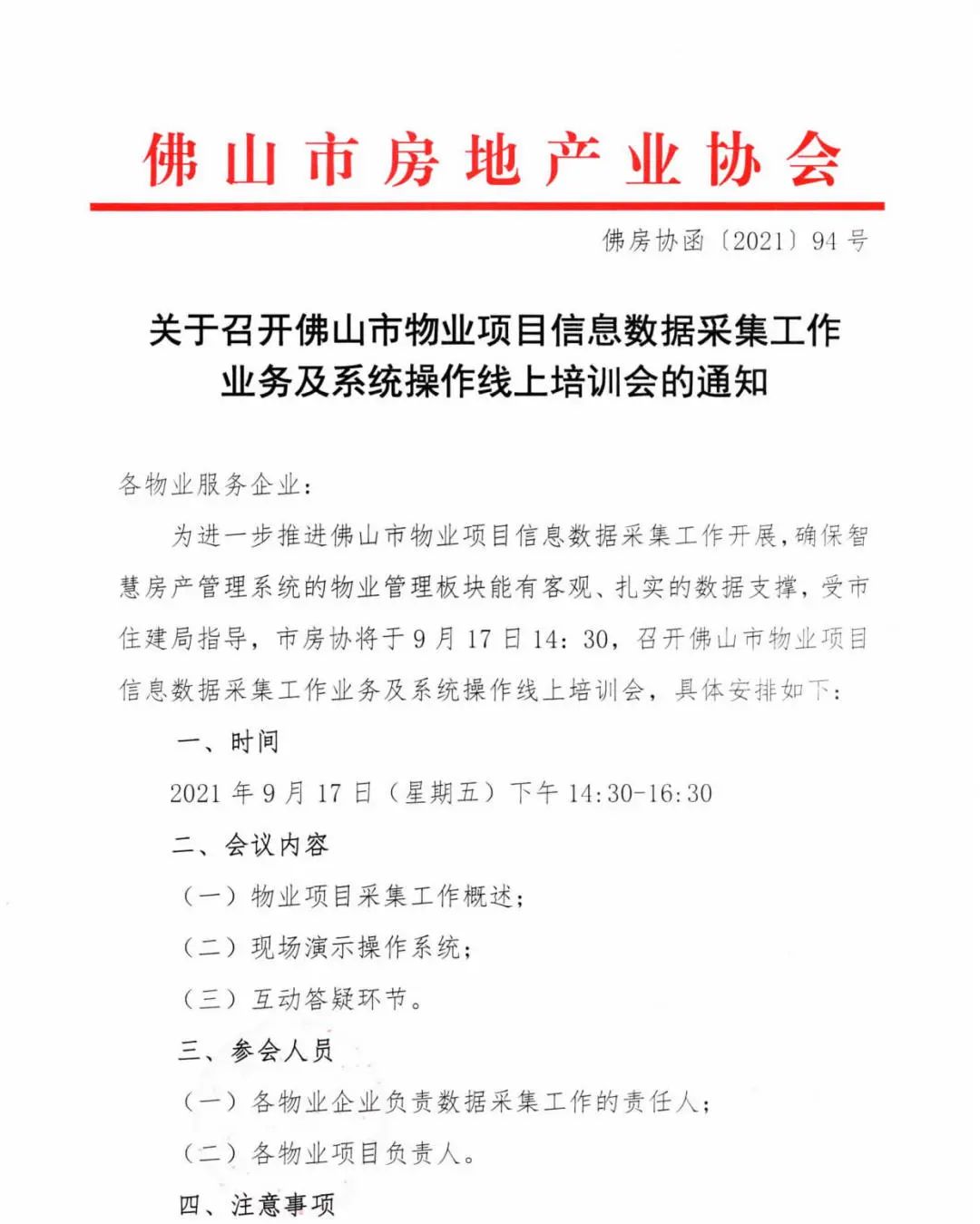 关于召开佛山市物业项目信息数据采集工作 业务及系统操作线上培训会的通知34