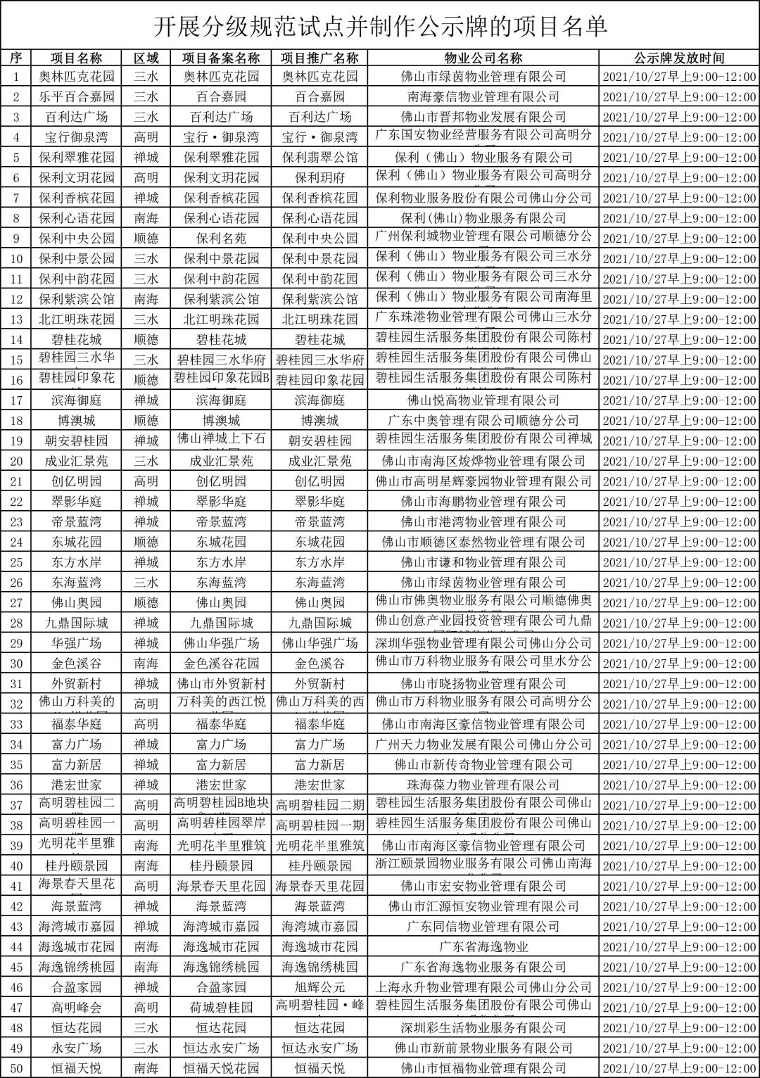 发表时间:2021-10-25 16:09 佛山市智慧物业服务平台公示牌(以下称为“公示牌”)已制作完成。 ![]() ![]() ![]() ![]() 请以下企业按照指定日期(附件1)到佛山市禅城区百花广场写字楼10楼1005室领取公示牌。前来领取公示牌的工作人员需准备以下资料: 1、携带《企业委托函》(附件2)和本人身份证(企业委托函需加盖公章); 2、领取时需提报公示牌所属项目的物业管理处电话以及物业管理费收费标准,请各单位提前准备有关资料; 3、未提报小区电梯数量或步梯数量的企业,请提前统计数量并在领取公示牌时进行提报; 4、未在“佛山市数字房地产行业发展平台”建档的企业,请先提前建档,方便后续公示牌安装的反馈工作;(企业建档指引网址:https://mp.weixin.qq.com/s/r9kjIg7rqBmgwq5fJ32orA) 5、请以下企业按照指定时间前来领取公示牌,对于未按规定安装公示牌的企业,佛山市住建局将会收集有关资料,并将对该企业进行诚信分扣分处理。 ![]() ![]() ![]() ![]() ![]() ![]() |