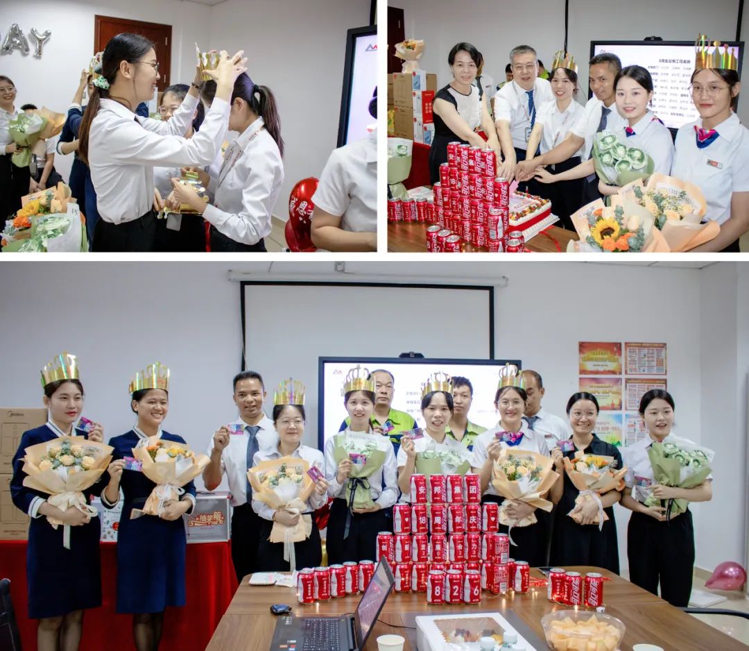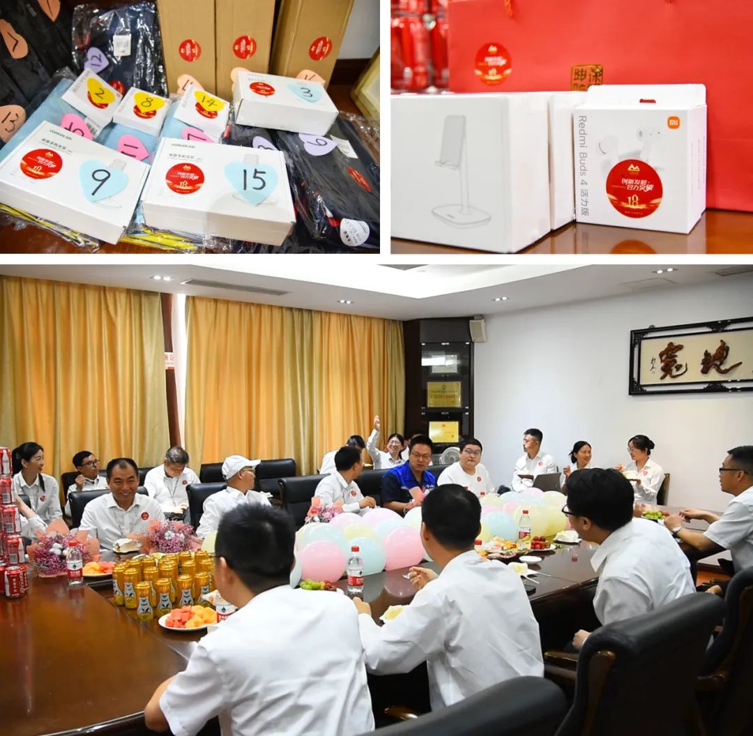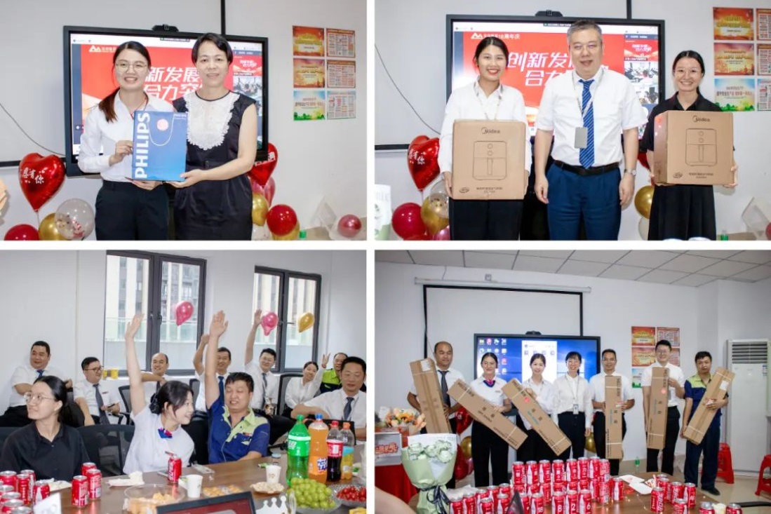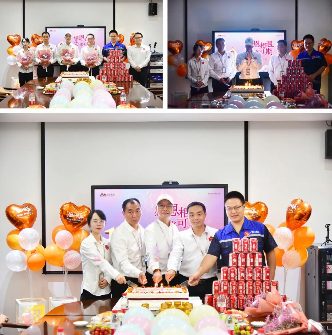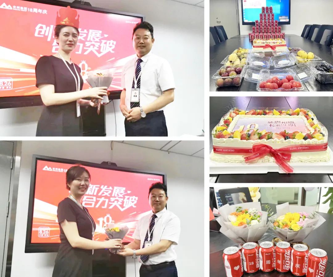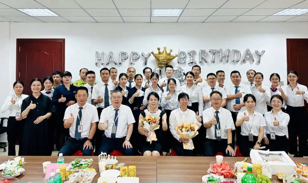 8月份,华南区域有30多名员工迎来了自己的生日,其中约有半数人仍坚守在各自的岗位上,公司为能够来到现场的寿星们派发了鲜花和生日礼物,集团总经理李玲、华南区域总经理尤加良一起为寿星们分发司庆蛋糕。
