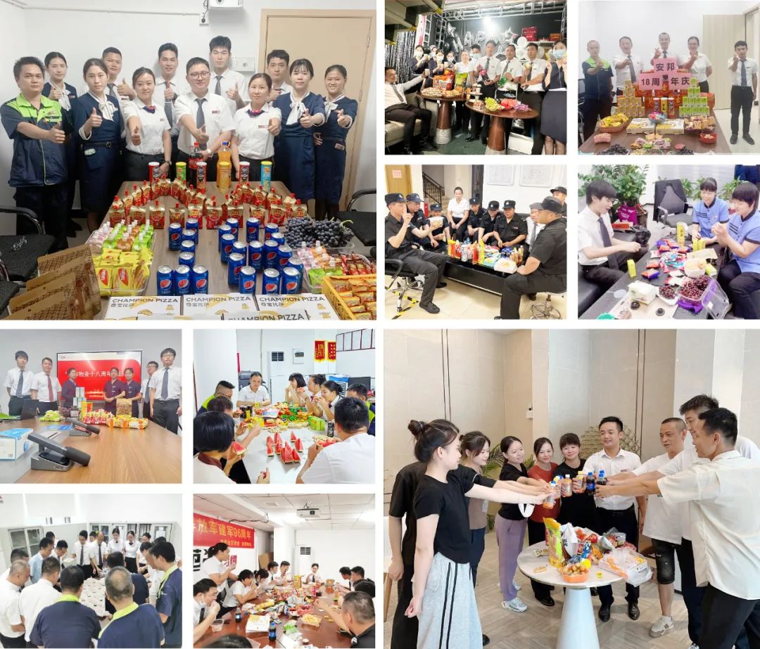 华南区域各在管项目物业服务中心准备了丰富的小吃、水果及饮品,组织员工开展18周年司庆座谈会,一起感受温馨、欢乐的司庆氛围。